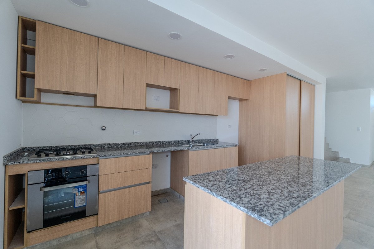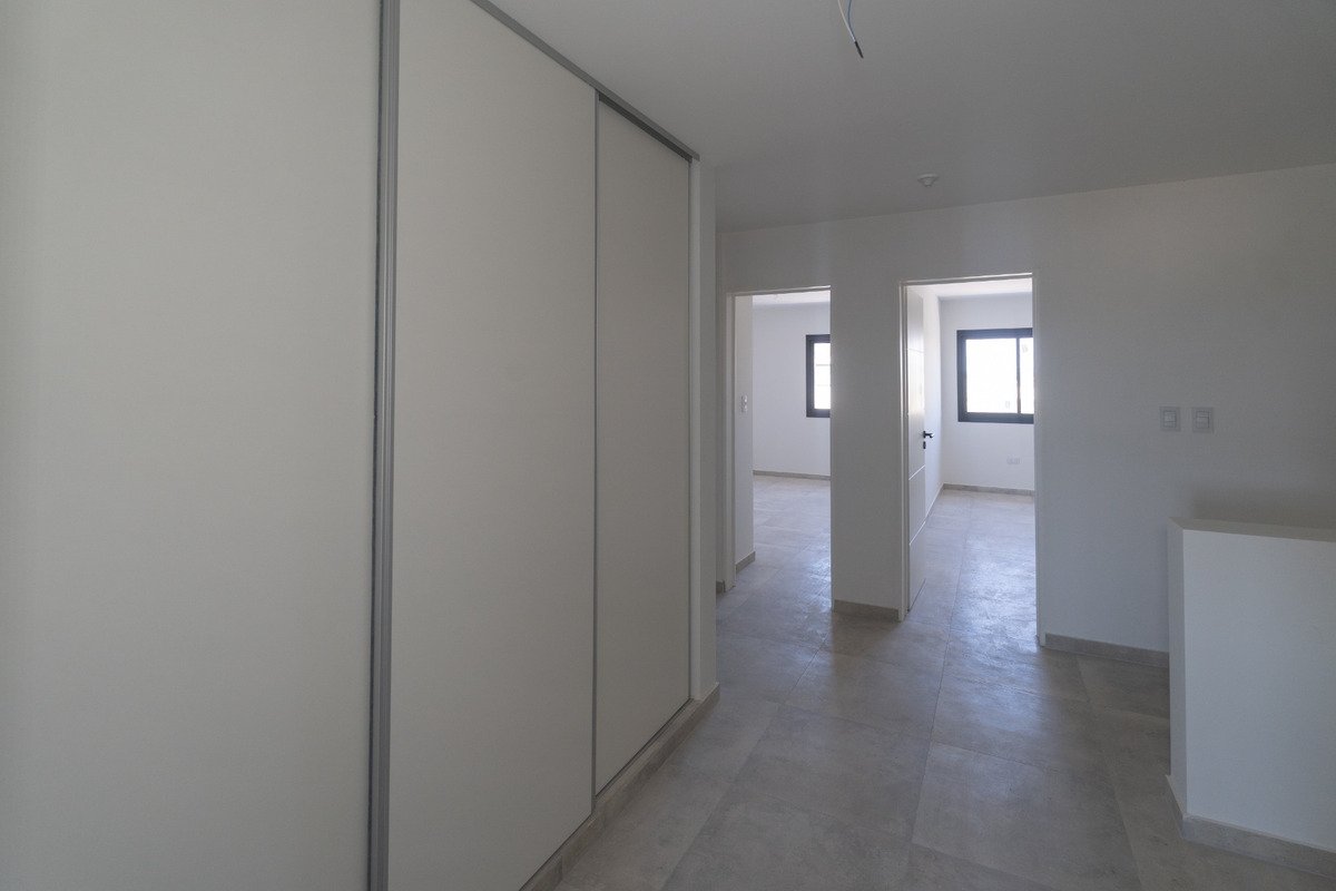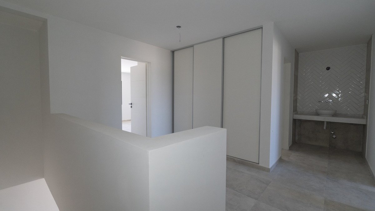 Venta dúplex 3 dormitorios y 3 baños (uno en suite) en Solares de Manantiales, frente a la plaza. Excelente calidad constructiva y confort. Aberturas con DVH (doble vidrio hermético) y calefacción por radiadores (instalación prevista para todo el sistema). Planta baja: - Pérgola para vehículo - Toilette - Living y comedor - Cocina - Galería con asador - Patio Planta alta: - 3 dormitorios con placard (uno en suite) - Baño con antebaño Superficies Cubierta: 171 m Terreno: 180 m (6 30 m) Por qué elegirlo Frente a espacio verde (más luz y mejor vista). Confort térmico (DVH radiadores). Distribución práctica: social en PB y privada en PA. Instalaciones Baños: completamente equipados con inodoro bidets marca ferrum. Bachas de apoyo de primera calidad y griferías de primera calidad marca Peirano con cierre cerámico. Dos de los tres baños cuentan con receptáculo para ducha con terminación en porcelanatos de primera calidad marca. Mesadas de los ante baños de microcemento alisado color gris. Cocina y lavadero: equipado con Horno eléctrico y anafe a gas. Pileta doble, marca Johnson. Mono comando cierre cerámico. Mesadas de granito Gris Perla. Instalaciones completas para colocación del comprador de lavarropas, microondas y campana. Equipamiento de cocina completo, bajo mesada y alacena. Asador y mesada de asador: Asador revestido en ladrillo refractarios, mesada complementaria revestida en porcelanato con pileta simple marca Johnson y grifería mono comando de cierre cerámico. Armario en patio: Armario con todas las instalaciones para que el comprador instale termotanque a gas o eléctrico. Puertas de chapa. Instalación de Aire acondicionado en estar comedor y en cada uno de los tres dormitorios. Se deja previsto tomas, cajas de preinstalación y desage de los mismos. Ventanas de aluminio línea Módena y línea A30 (perta ventana), DVH. Con premarcos y tapajuntas. Puertas interiores de primera calidad de Rinder Aberturas. Marco de chapa 18 de 170 mm y puertas en MDF modelo Oriente (buñas horizontales) Puerta de ingreso doble chapa lisa en calibre numero 18 rellena con poliestireno compactado. Sistema de buña tiradora. Pisos de porcelanato medida 60 x 60 color gris. De primera calidad. Pintura de puertas interiores sintético satinado primera calidad, color blanco. Pintura de paredes y cielorrasos látex primera calidad, color blanco. Cubierta de losa en toda la casa Esta cubierta de losa tiene terminación de bovedillas más membrana elastomerica poliuretanica blanca de primera calidad.